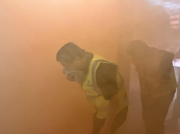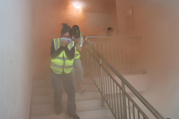 隨后進(jìn)入應(yīng)急疏散演練環(huán)節(jié),一名員工發(fā)現(xiàn)火情,立即上報(bào)并啟動(dòng)應(yīng)急響應(yīng)。員工們迅速行動(dòng),用濕毛巾捂住口鼻,按照緊急疏散標(biāo)識(shí)安全、有序的進(jìn)行緊急撤離。在演練過(guò)程中,員工們展現(xiàn)了較高的自救互救意識(shí)和團(tuán)隊(duì)協(xié)作能力,確保了演練順利進(jìn)行。